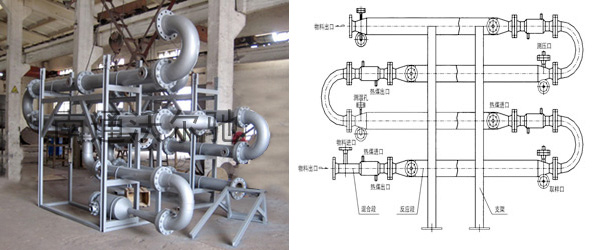 反應(yīng)器是化學(xué)反應(yīng)工藝中的核心設(shè)備,它按結(jié)構(gòu)大致可分管式、釜式、塔式、固定床等,適用于氣、液、固相的化學(xué)混合反應(yīng)。JHF系列強(qiáng)化傳熱反應(yīng)器內(nèi)部結(jié)構(gòu)與靜態(tài)混合器相仿,能使進(jìn)入強(qiáng)化傳熱混合反應(yīng)器的不同液體互相很好地混合,但與常規(guī)的靜態(tài)混合器內(nèi)部單元不同,其內(nèi)部構(gòu)件不是用板材而是用較細(xì)的管材制作,細(xì)管內(nèi)部可以通加熱介質(zhì)也可以通冷卻介質(zhì),所以內(nèi)部單元不僅能起到了充分混合,而且能提供很大的傳熱比表面積。