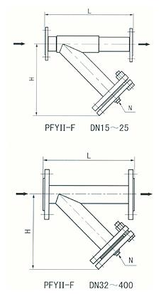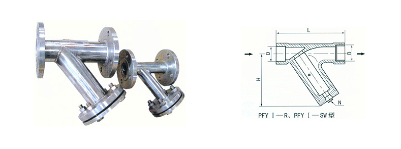 (4)Y型焊接錐管螺紋式(PFYII-R型)、承插焊式(PFYII-SW型) (DN15—40,PN≤5.OMPa)